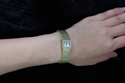 着用モデルの手首回りは15cmで、手首からシャラリと落ちた感じは↓こんな感じです。