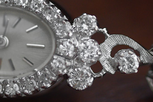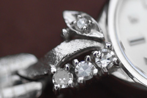 14Kケースに大粒のダイヤモンドを飾った大変豪華なデザインです。