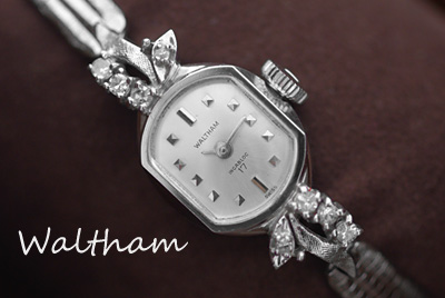 状態の良い金無垢のダイヤモンドカクテルウォッチのウォルサムが、