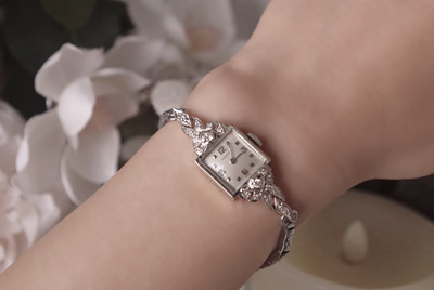 【着用写真】スクエア型 ホワイトゴールド *2388longines