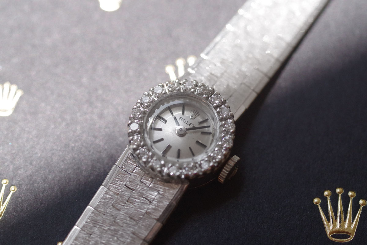 Rolexは70年代前後に多くのダイヤ巻きのデザインを販売しておりますが、時代の流れからオーバルや、丸みのある四角・長四角が殆どで、このサイズの真円は見かけません。