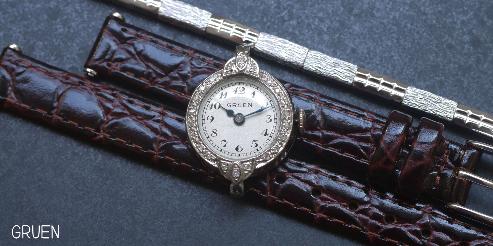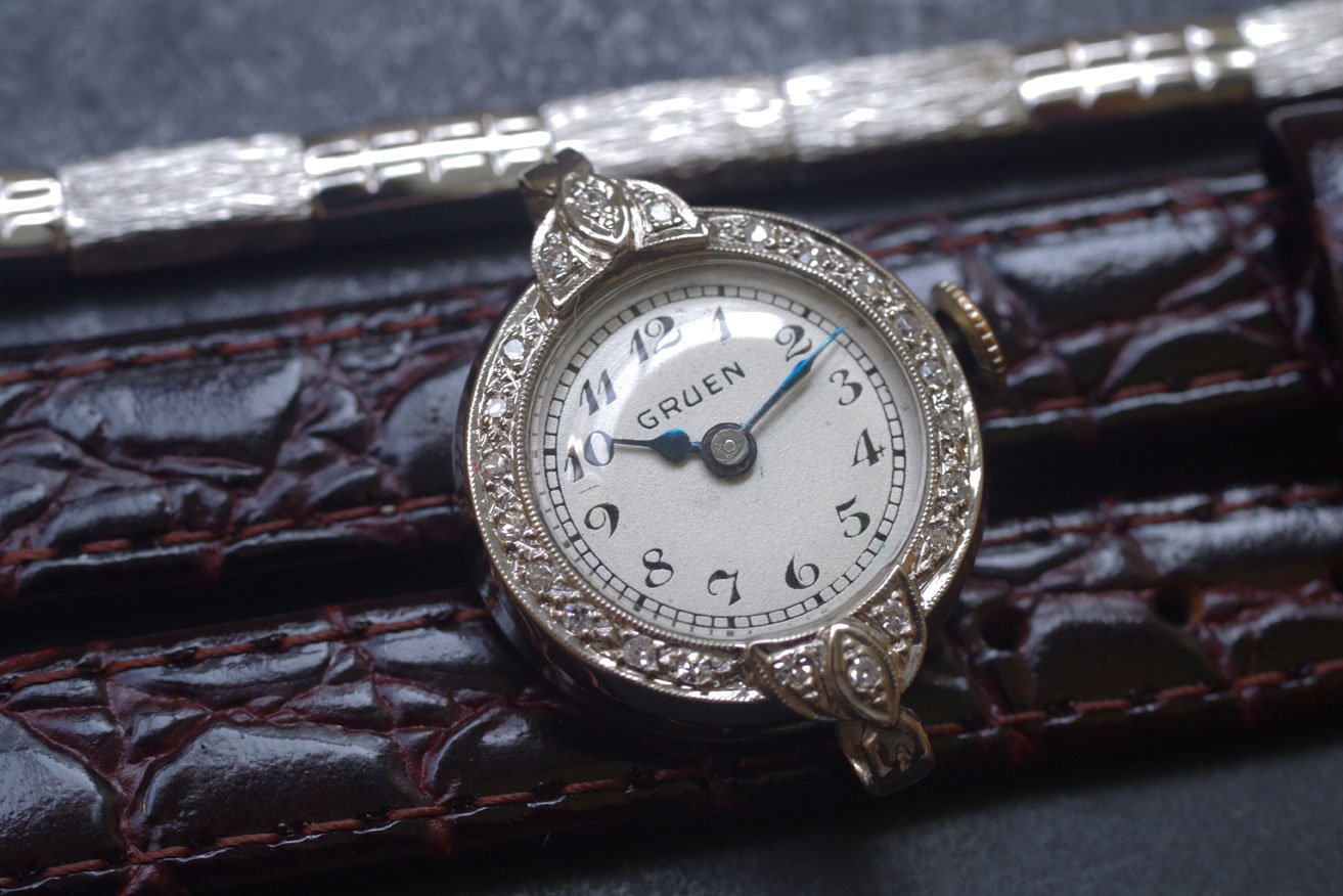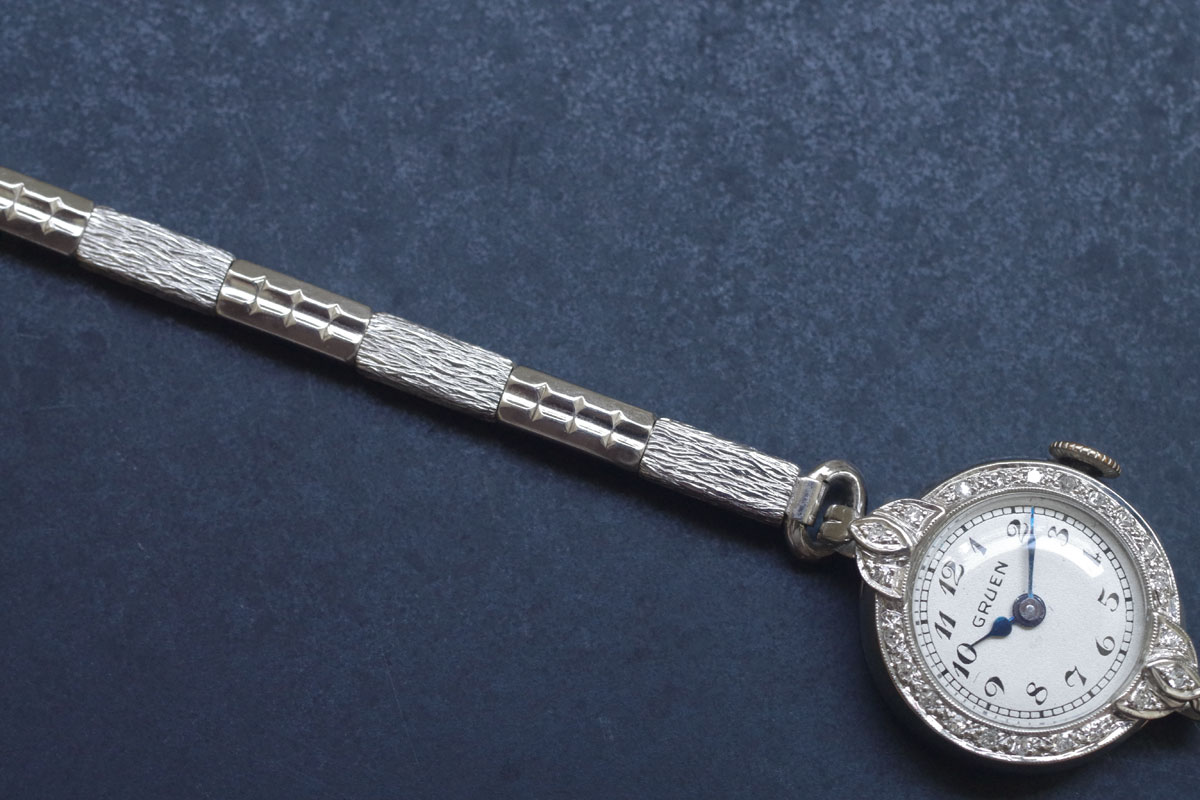 本品に限らずアールデコはケースに隙間なくダイヤモンドを埋め込むのが特徴なのですが、