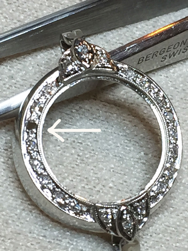 ダイヤモンドが外れておりましたので修復をしております。