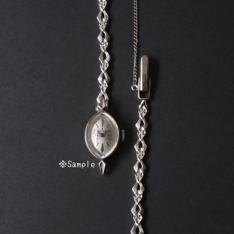写真のように、アーモンド形のロレックスなど、アンティーク時計らしいデザインと合わせると、