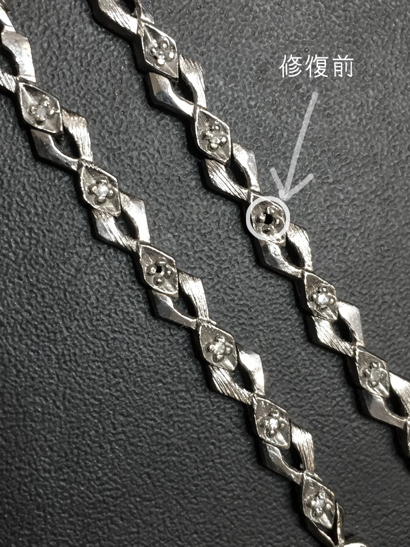 ダイヤの留め直しは勿論、切れても曲がっても修理可能ですし、経年変色も綺麗にできます。