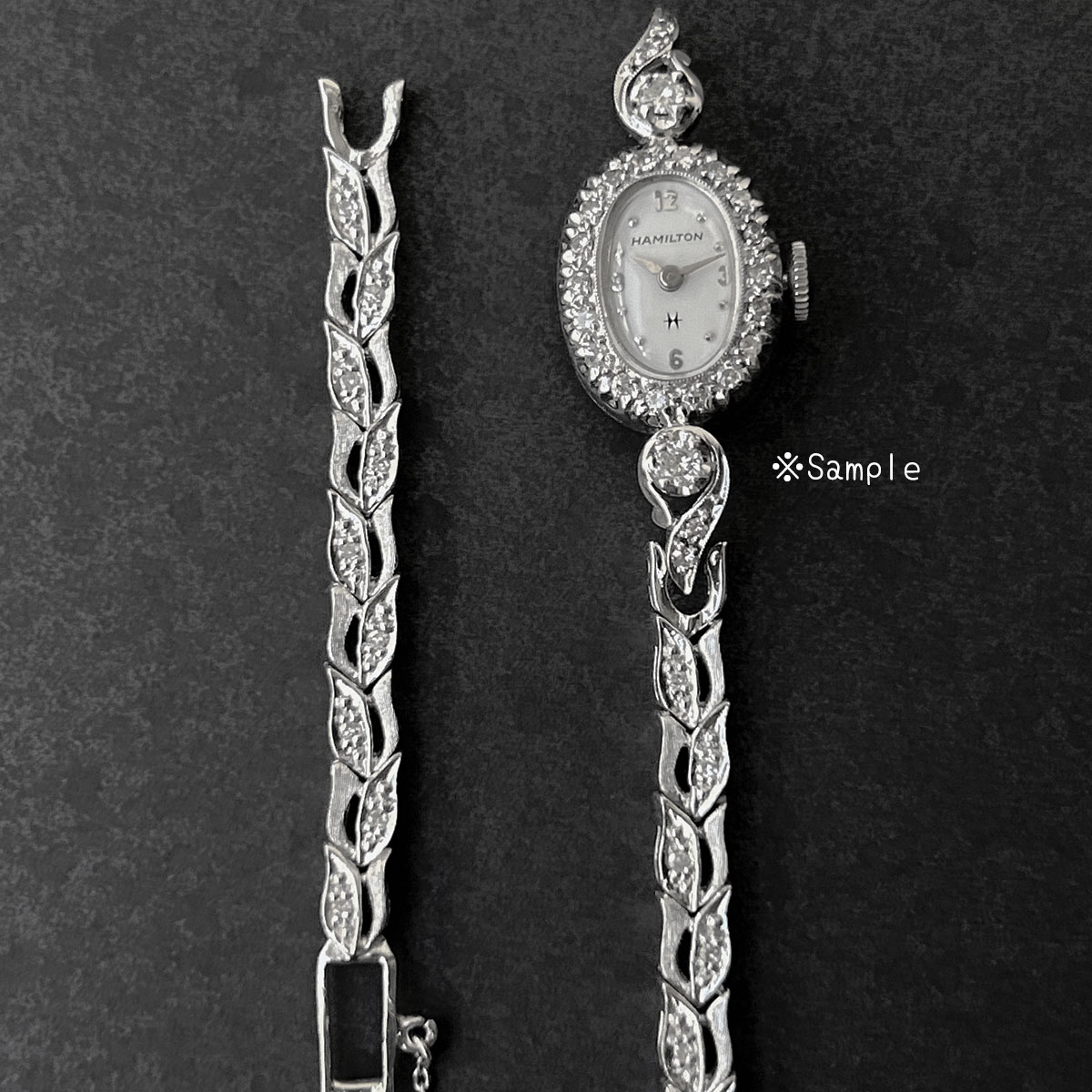 写真のように、ジュエリーケース仕立てのハミルトンなど装飾性の高い時計と組み合わせれば、