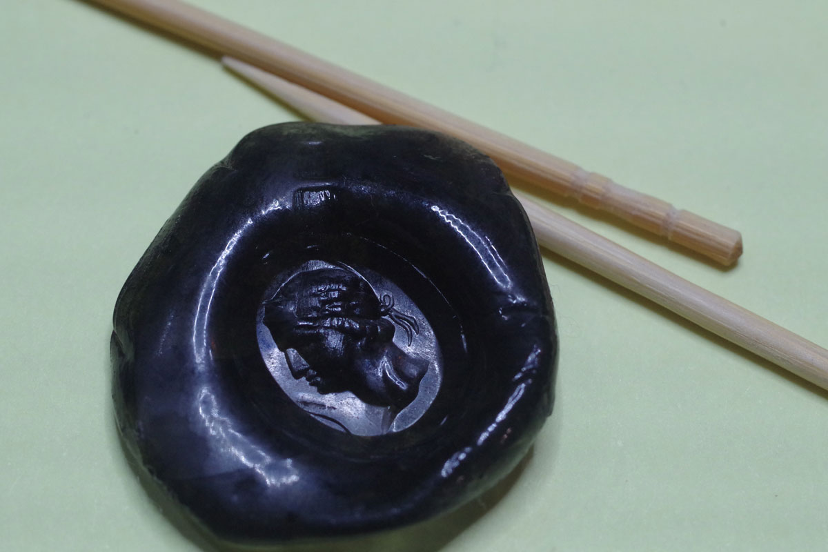 こちらが、実際にフォブシールを蝋に押してみた写真ですが細工があまりも繊細で![]()