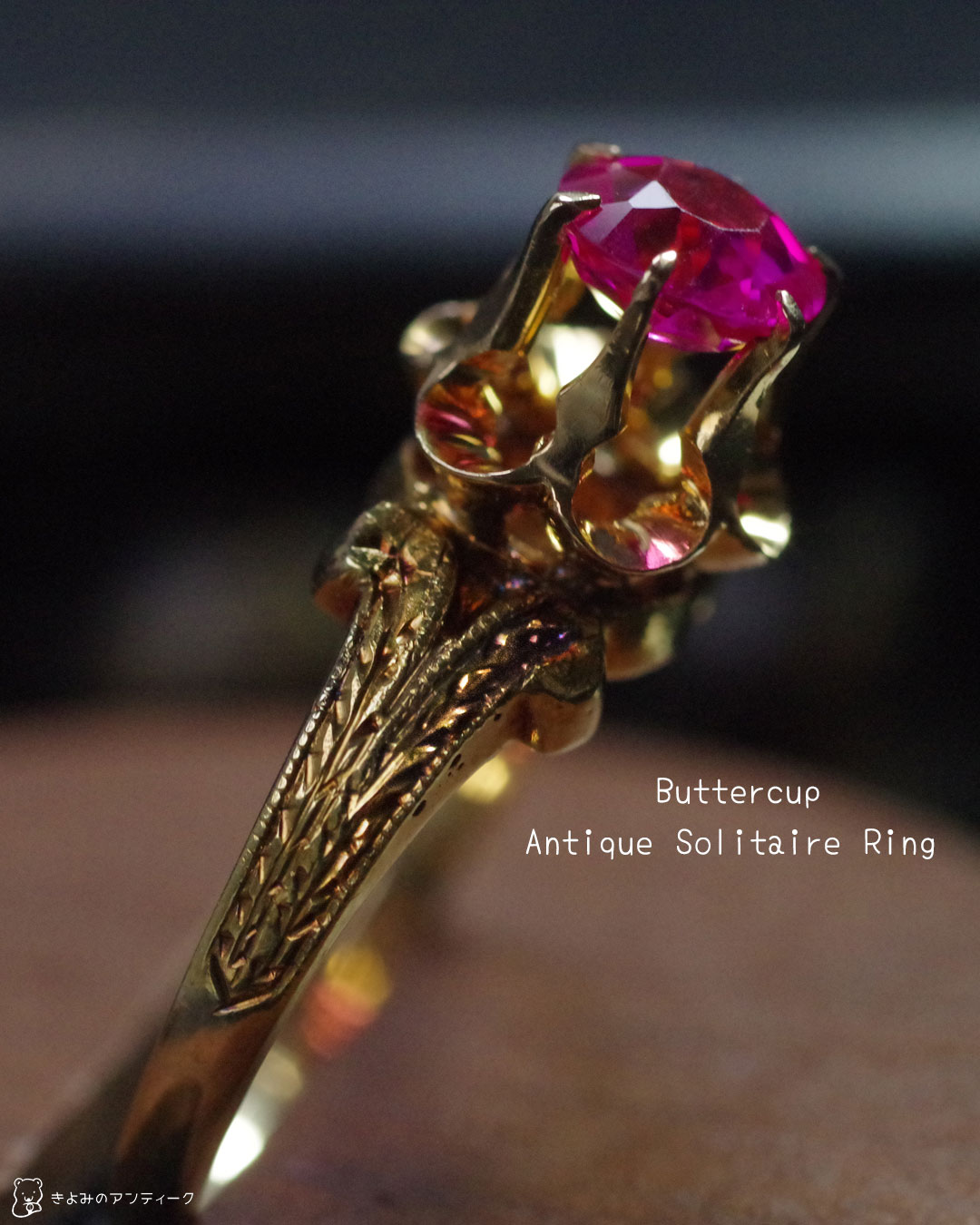 本日は店主セレクト、とっても珍しい色石バターカップの、王道アンティークソリティアリングをご紹介します